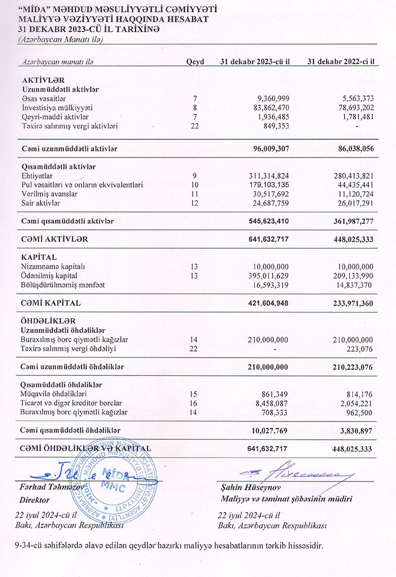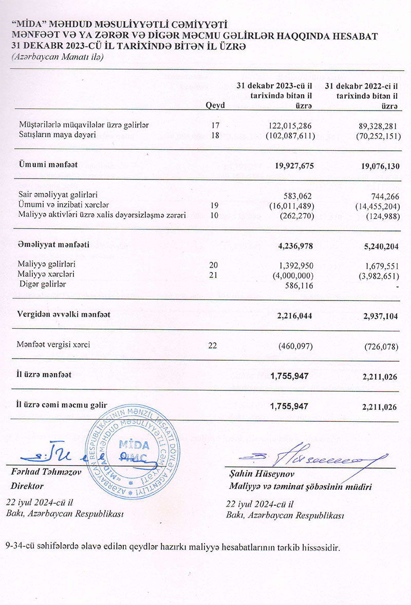 Mənzil İnşaatı Dövlət Agentliyinin (MİDA) tabeliyindəki MİDA MMC şirkəti 2023-cü ili 1 milyon 756 min manat xalis mənfəət ilə başa vurub. Şirkət 2022-ci ili 2 milyon 211 min manat xalis mənfəət ilə bağlamışdı. Beləliklə, ötən il MİDA şirkətinin xalis mənfəəti 455 min manat və ya 20,6% azalıb. MMC-nin gəlirlərinin azalması satışın maya dəyərinin, ümumi və inzibati xərclərin artması ilə əlaqədardır.