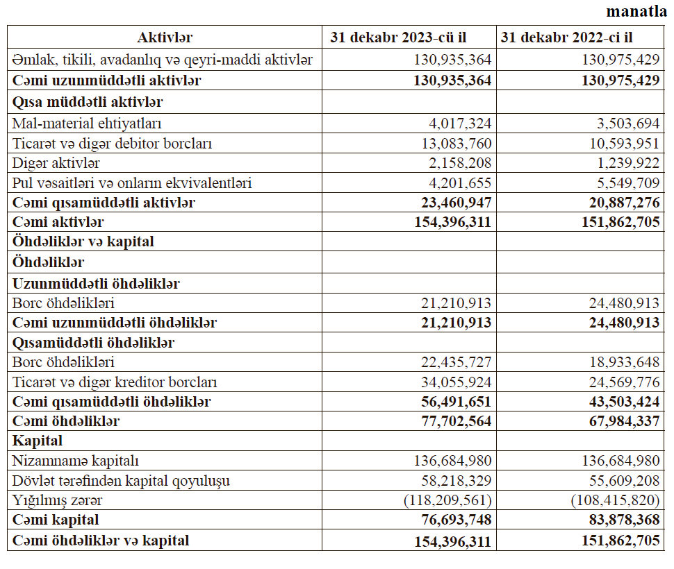 Yığılmış zərərin artması “Azəristiliktəchizat” ASC-nin 2023-cü ildə də xalis zərər ilə fəaliyyət göstərdiyinə işarədir.