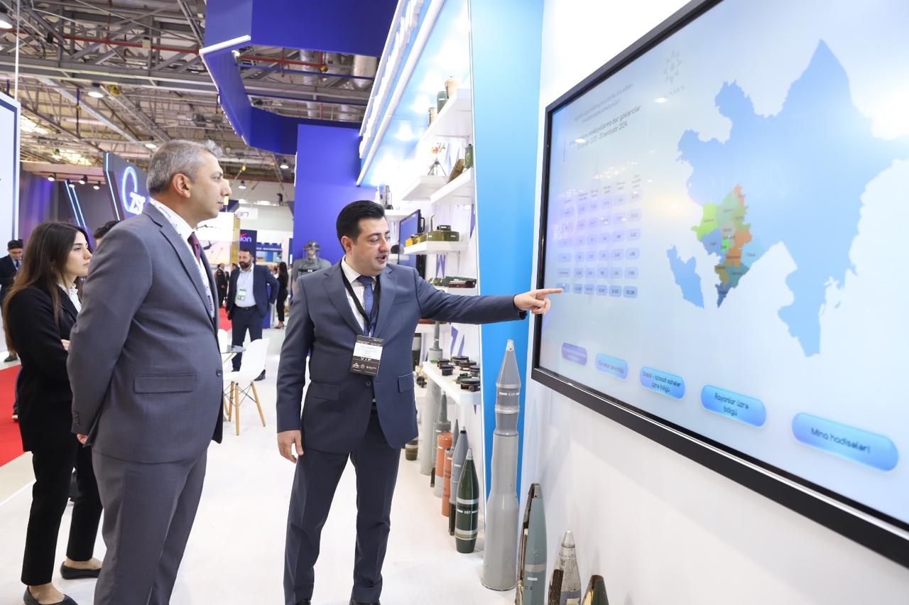 Təqdimat mərasimi çərçivəsində nümayəndə heyəti Agentliyin ADEX 2024 sərgisində təmsil olunduğu stendi ziyarət edərək, işğaldan azad edilmiş ərazilərdə icra edilən fəaliyyət, interaktiv xəritə üzərindən minatəmizləmə göstəriciləri, əməliyyatlar zamanı istifadə olunan alət və avadanlıqlar, azad edilmiş ərazilərdə əməliyyatlar zamanı aşkar olunan partlayıcı sursat nümunələri, eləcə də minatəmizləmə fəaliyyətini əyani şəkildə əks etdirən imitasiya sahəsi ilə tanış olublar.