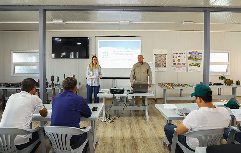 Agentliyin Göygöl Regional Təlim Mərkəzinin təlimatçısı Rəşad Əliyev tərəfindən humanitar minatəmizləmə təlimlərinin əsasları, minatəmizləmə fəaliyyəti üzrə mövcud kadr potensialının inkişafı və yeni kadrların hazırlanması prosesinin icrası haqda məlumat verilib. Həmçinin mövcud mina təhlükəsi barədə məlumatlılığın artırılması məqsədilə Partlayıcı Sursatların Təhlükəsinə dair Maarifləndirmə təlimi keçilib.