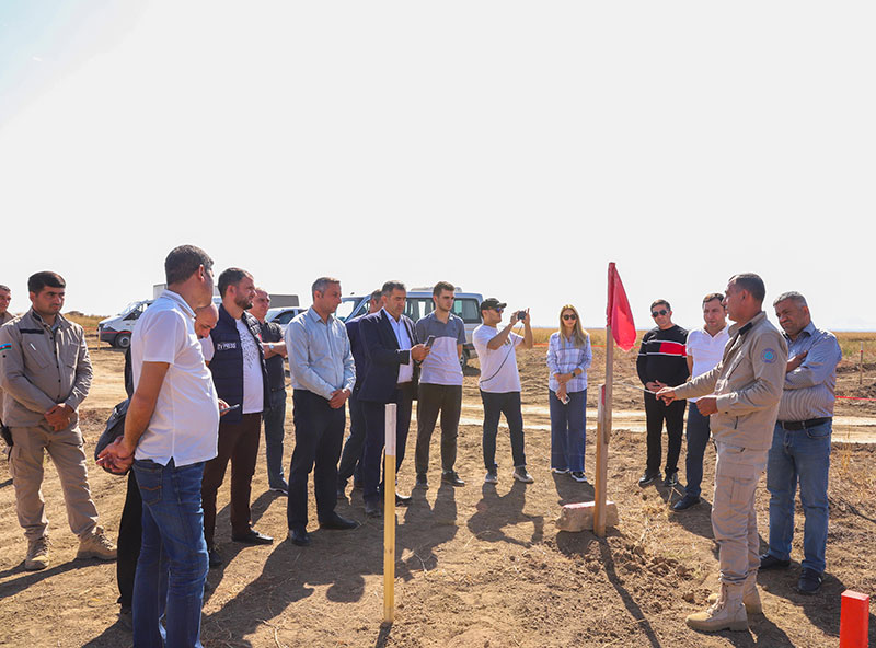 Ağdam rayonunun Sarıcalı kəndinə səfər edən təlim iştirakçılarına Agentliyin Əməliyyat rəhbəri Xaliq Zülfüqarov tərəfindən ərazidə icra edilən humanitar minatəmizləmə fəaliyyəti, texniki tədqiqatın nəticəsinə əsasən tətbiq olunan metodologiyalar, sahənin işarələnməsi sistemi barədə ətraflı məlumat verilib.