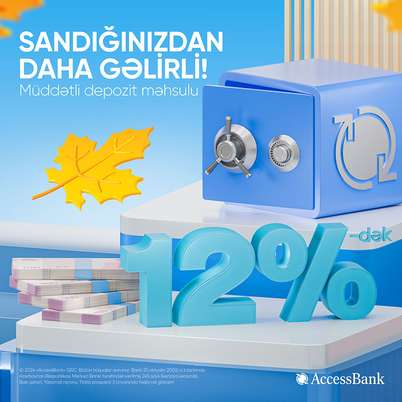 AccessBank-dan yüksək gəlirli 12%-lik əmanət fürsəti!(®) AccessBank yerli valyutada müddətli əmanətlər üzrə faiz dərəcələrini 12%-dək yüksəldib.