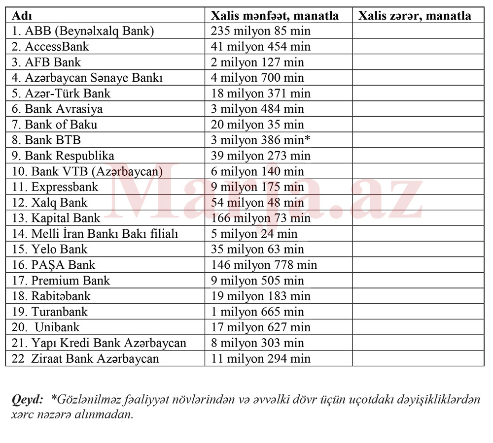 22 bank xalis mənfəət açıqladı - SİYAHI