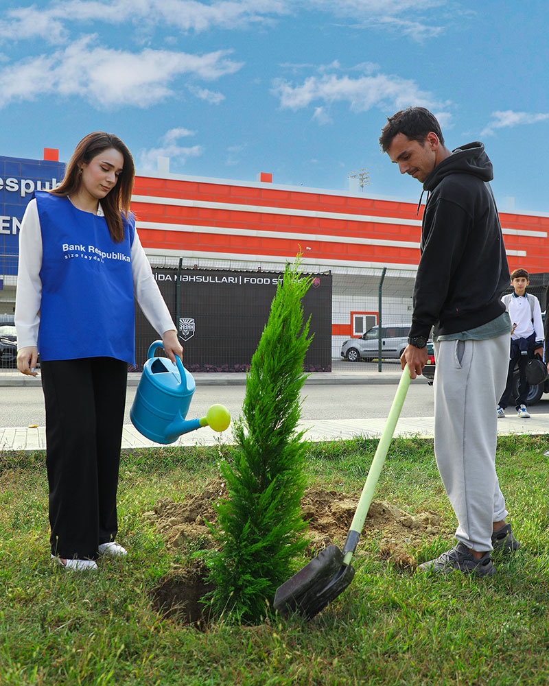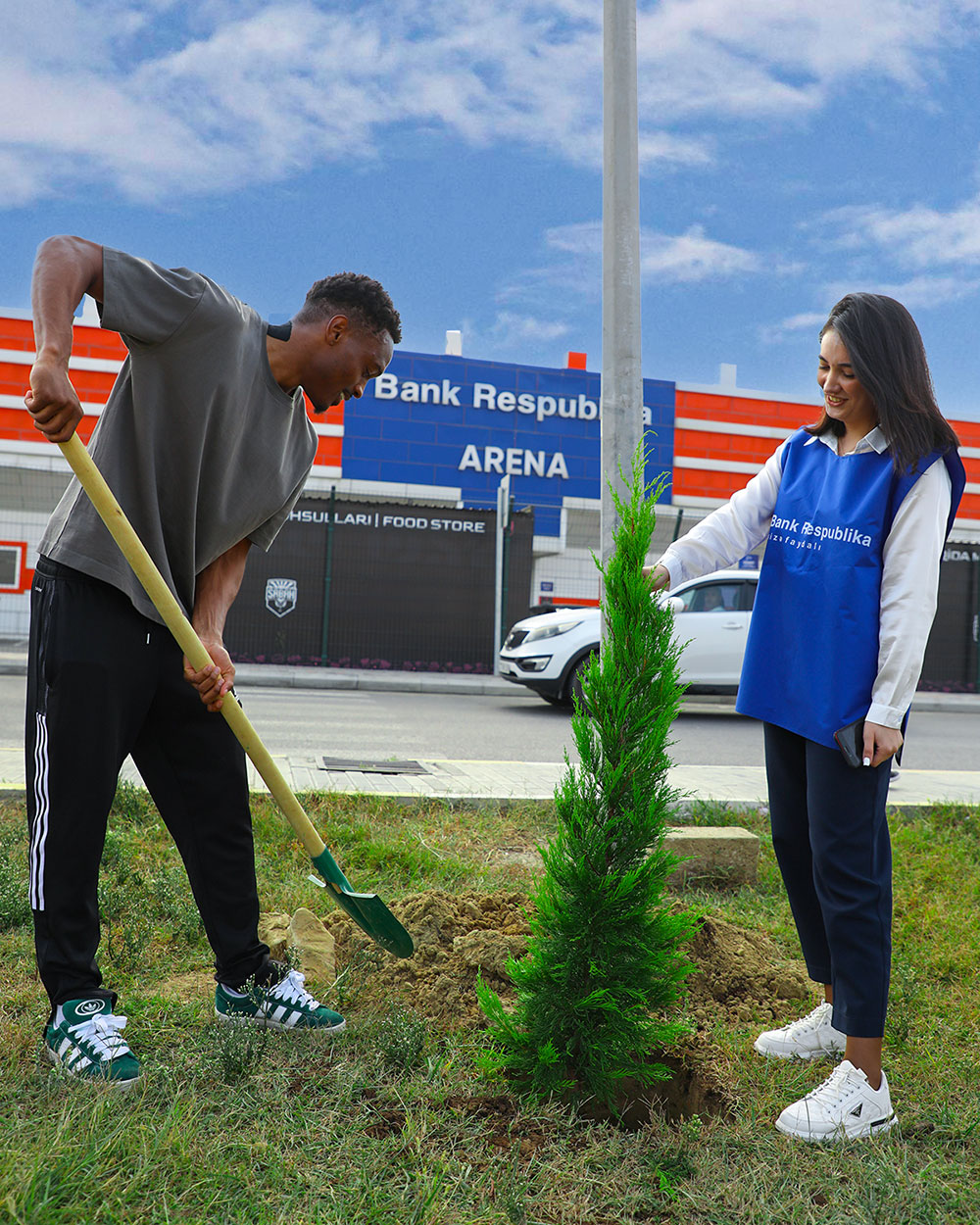 Belə ki, Bankın əməkdaşları futbol üzrə ölkə çempionatının aparıcı klublarından biri olan “Sabah” FK futbolçuları ilə birgə Masazırda yerləşən “Bank Respublika Arena”nın ətrafında yerli iqlim şəraitinə uyğun 100-ə yaxın ağac əkiblər.