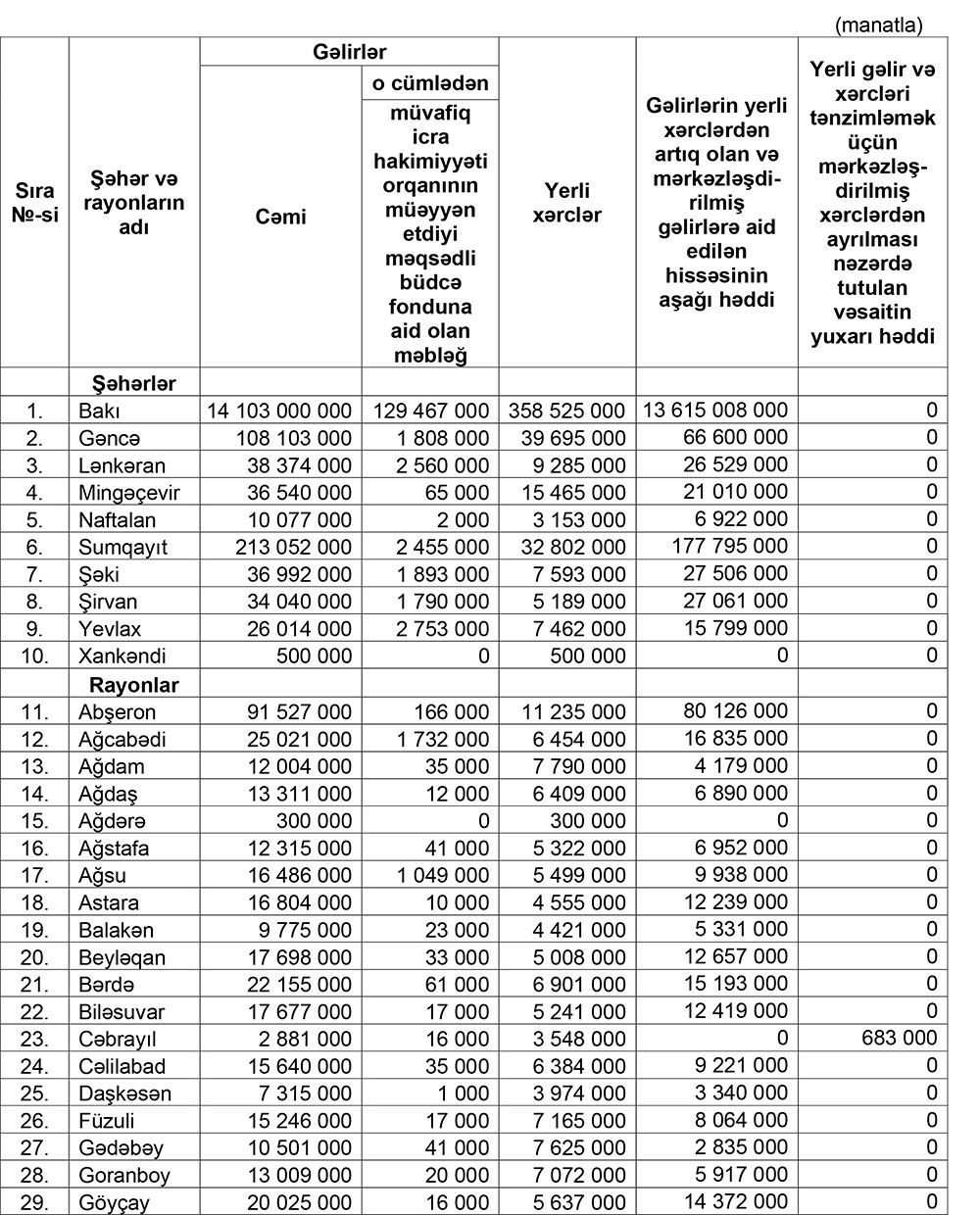 Məlumata görə, gələn il büdcə gəlirlərinin 38 milyard 316 milyon manat, xərclərinin isə 41 milyard 367,6 milyon manat olacağı gözlənilir.