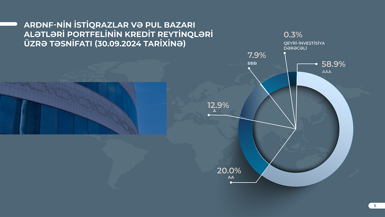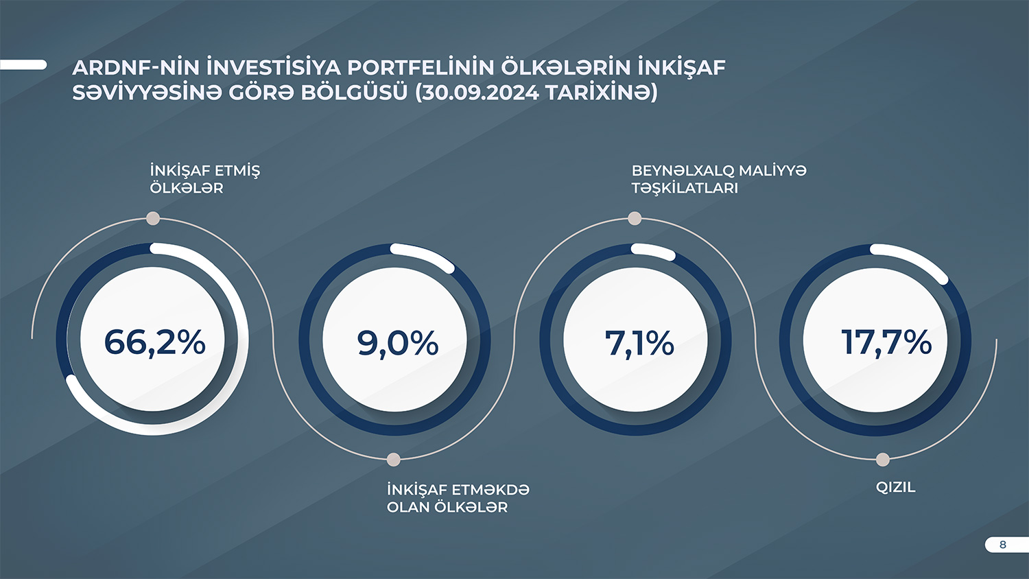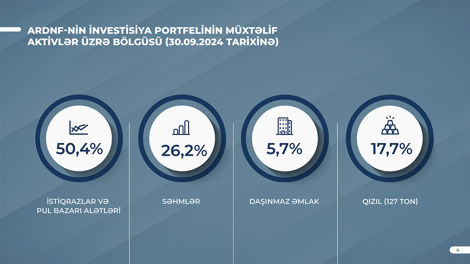 Qeyd edilib ki, Fondun aktivlərinin idarə edilməsindən əldə edilən gəlirlərdə əsas töhfə səhm investisiyalarının payına düşür. İnflyasiyanın sabitləşməsi və iqtisadi artımın dayanıqlı olması fonunda dünyanın aparıcı iqtisadiyyatlarının mərkəzi bankları uçot dərəcələrini aşağı salaraq yumşaq monetar siyasətə doğru keçid etmişdirlər. Bu siyasət dəyişikliyi sabit gəlirli qiymətli kağızların dəyərinin artmasına və gəlirliliyin yüksəlməsinə səbəb olmuşdur. Yüksək borclanma xərclərinin iqtisadiyyata təzyiqinin azalması ehtimalları investorların davranışına müsbət təsir göstərmişdir ki, bu da öz növbəsində səhm bazarında canlanma ilə nəticələnmiş və əsas səhm indekslərində artımlar müşahidə olunmuşdur. Bu, xüsusilə texnologiya və istehlak malları kimi sektorlar üçün faydalı olmuşdur.