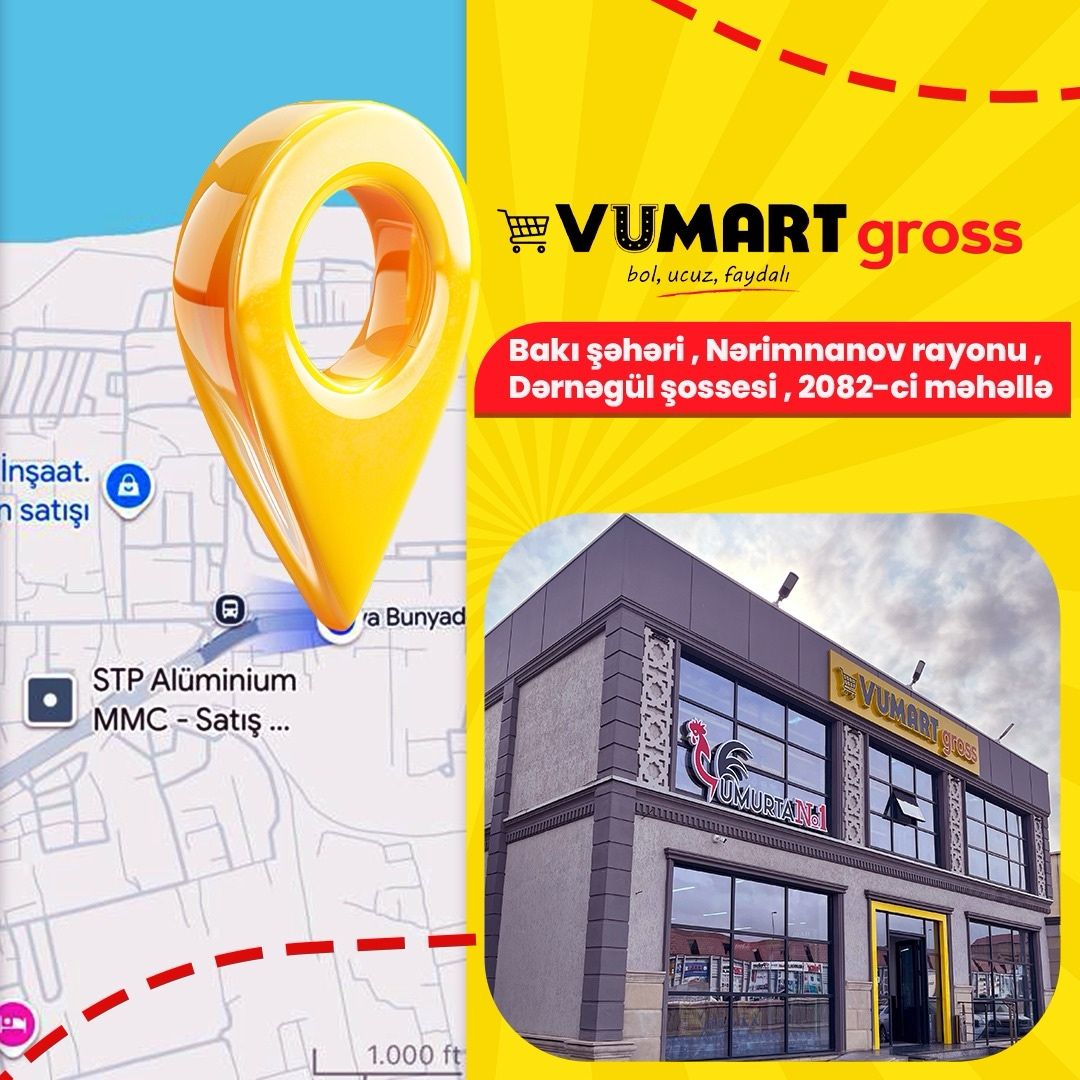 Dərnəgül şossesində istifadəyə verilən filial VUMART GROSS Topdan və Pərakəndə mağazalar şəbəkəsinin ilk filialıdır.