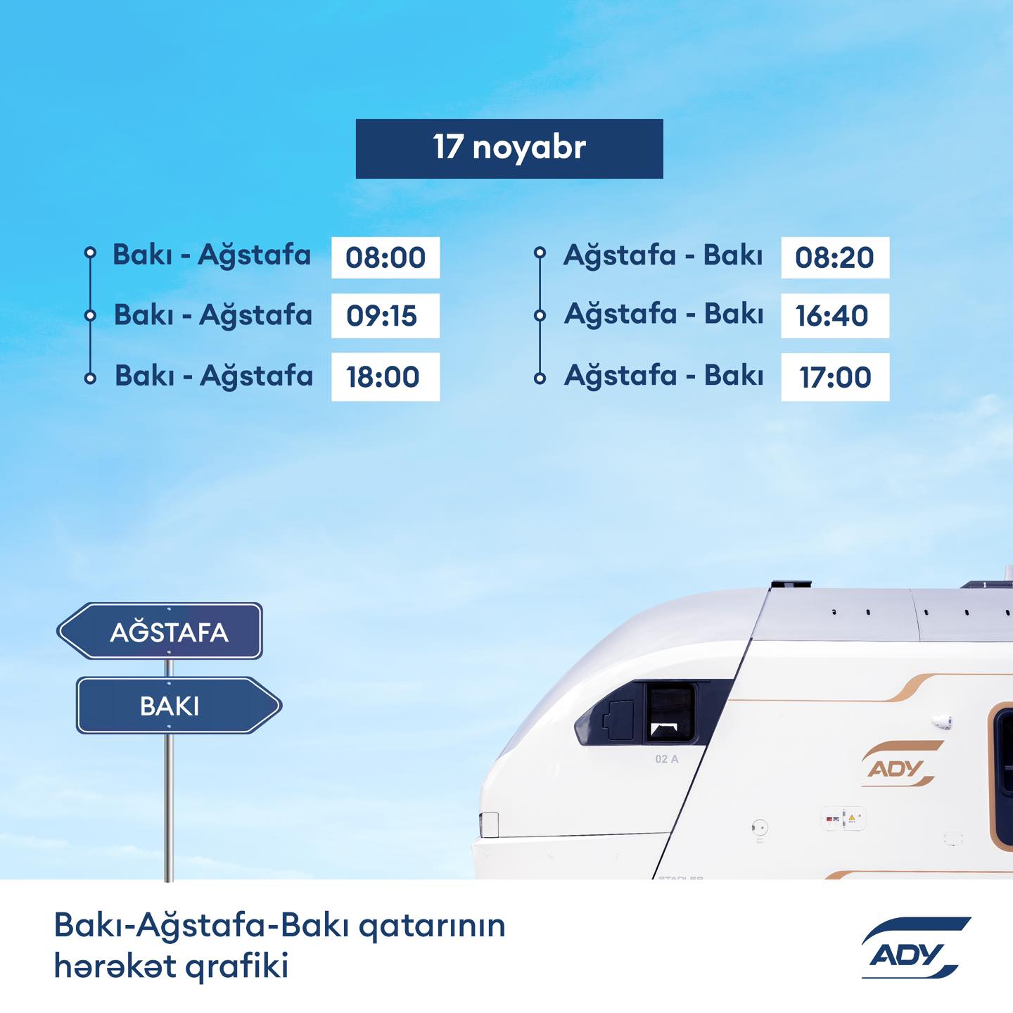 Eyni zamanda, Bakı-Ağstafa-Bakı qatarlarımızla ənənəvi qrafiklə hər gün hər iki istiqamətə səfər edə bilərsiniz.