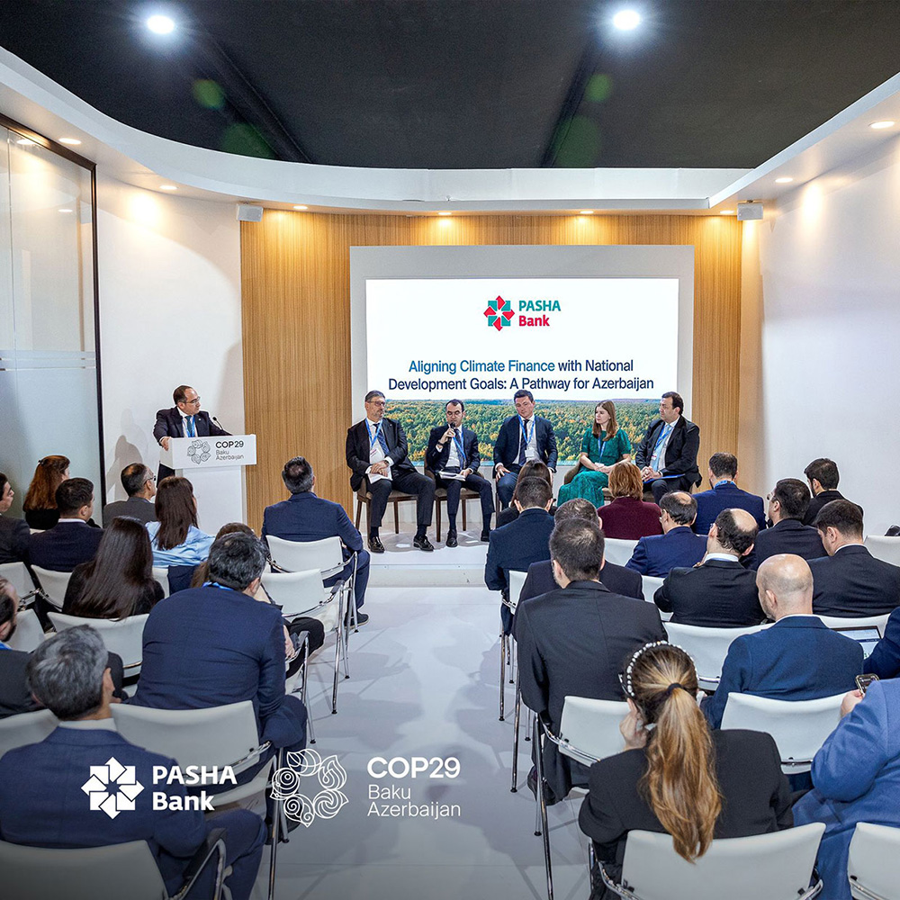 Mövzu “İqlim maliyyəsinin milli inkişaf hədəfləri ilə uyğunlaşdırılması: Azərbaycanın yolu” olub.Azərbaycanın aparıcı korporativ maliyyə institutu “PAŞA Bank” COP29 çərçivəsində iqlim dəyişiklikləri, dayanıqlı iqtisadi inkişaf və bu sahədəki çağırışlara dair müzakirələrdə fəal iştirak edir.