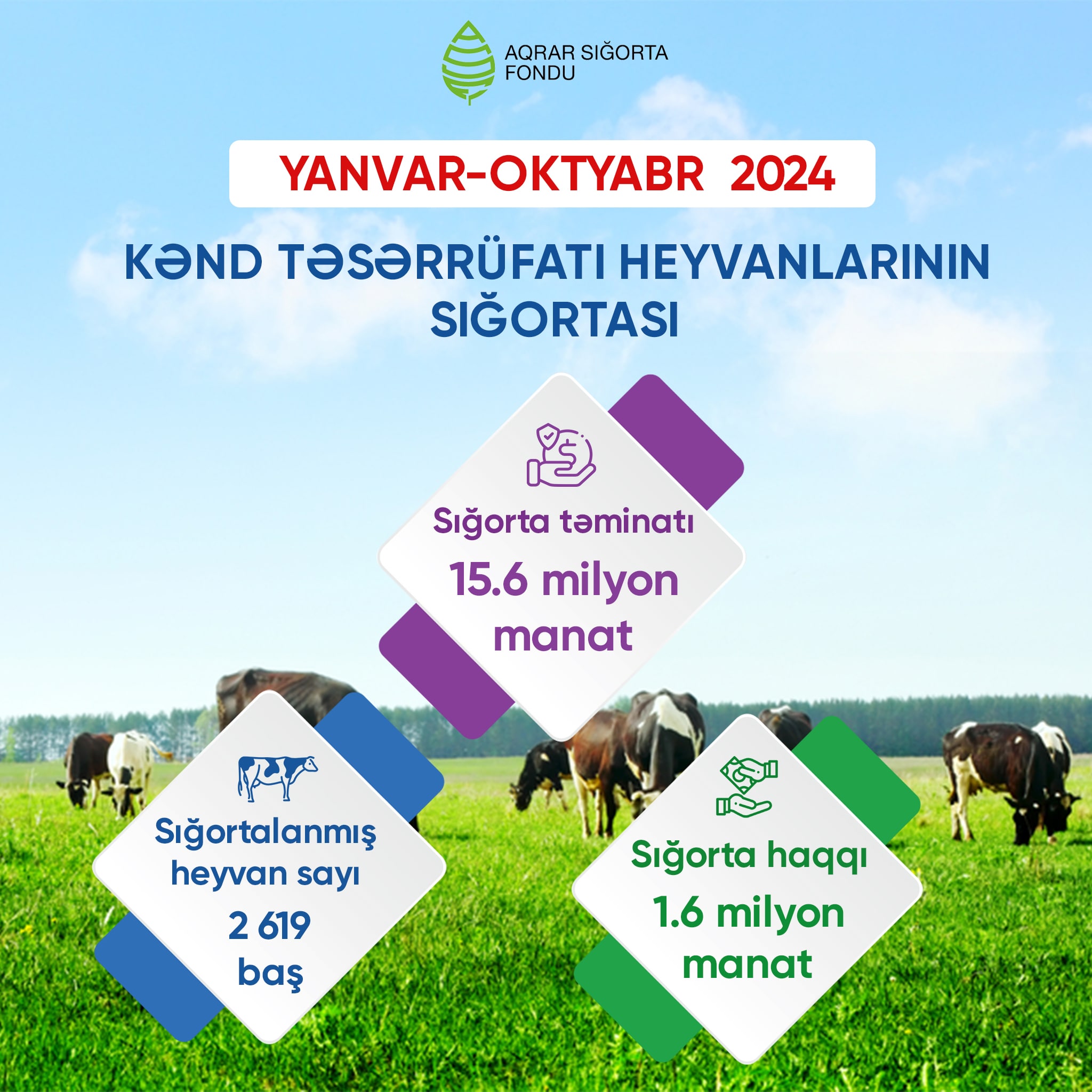 Ümumilikdə bu dövrdə 12 milyon 421 min manat sığorta haqqı toplanılıb, müqabilində fermer və təsərrüfatlara 475 milyon manat həcmində sığorta təminatı verilib.