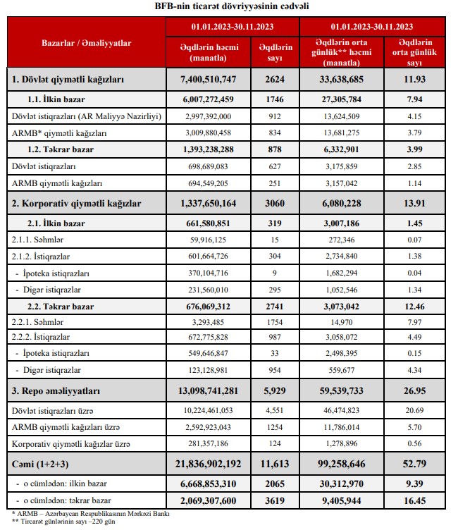 Bu barədə Marja.az Bakı Fond Birjasının (BFB) Ticarət dövriyyəsi barədə statistikaya istinadən xəbər verir.