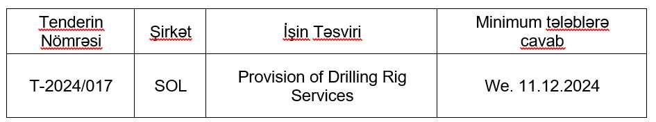 Tenderin Nömrəsi | Şirkət | İşin Təsviri | Minimum tələblərə |