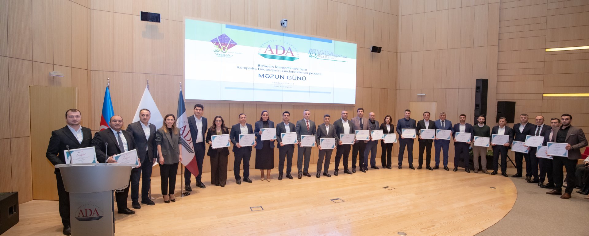 ADA Universitetində Veysəloğlu Şirkətlər Qrupunun rəhbər mövqedə çalışan əməkdaşları üçün təşkil edilən "Biznesin İdarəedilməsi üzrə Kompleks Bacarıqların Gücləndirilməsi Proqramı" başa çatıb. Bu münasibətlə ADA Universitetində yekun tədbir keçirilib, iştirakçılara sertifikatları təqdim edilib.