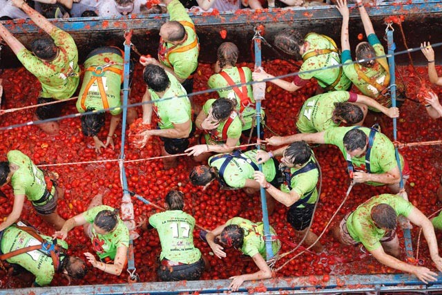 İspaniyanın şərqindəki Valencia şəhərinin Bunol rayonunda bu il 72-ci dəfə keçirilən "La Tomatina" adlı festivala qatılan 22 min nəfər, 160 ton pomidoru bir-birinə atıb.