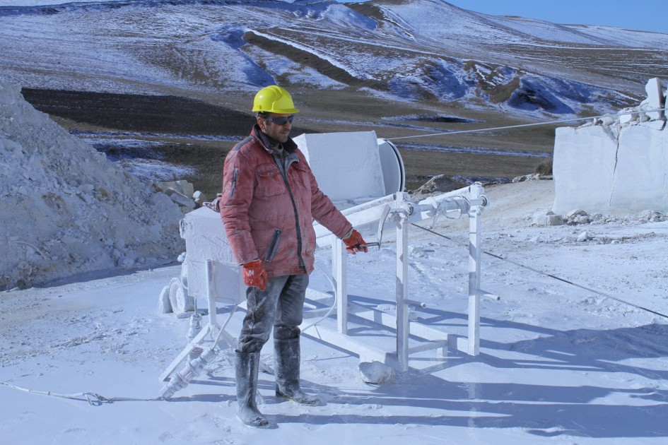 Karxananın baş ustası Habil Qasımov dağın xüsusi texnika ilə kəsilərək, mərmər daşların istehsal edildiyini deyib: “20 ilə yaxındır ki, mərmər karxanalarında çalışıram, olduqca mürəkkəb və çətin işdir. Əvvəlcə xüsusi texnikalar vasitəsilə yatağın ehtiyatları dəqiqləşdirilir. Sonra xüsusi ağır texnikalar vasitəsi ilə xammal kəsilərək çıxarılır. Hazırda bizim işlədiyimiz karxanadakı ağ mərmərdir. Təbii ki, digər karxanalarda mərmərin başqa rənglərdə olan növlərini də çıxarırlar”.