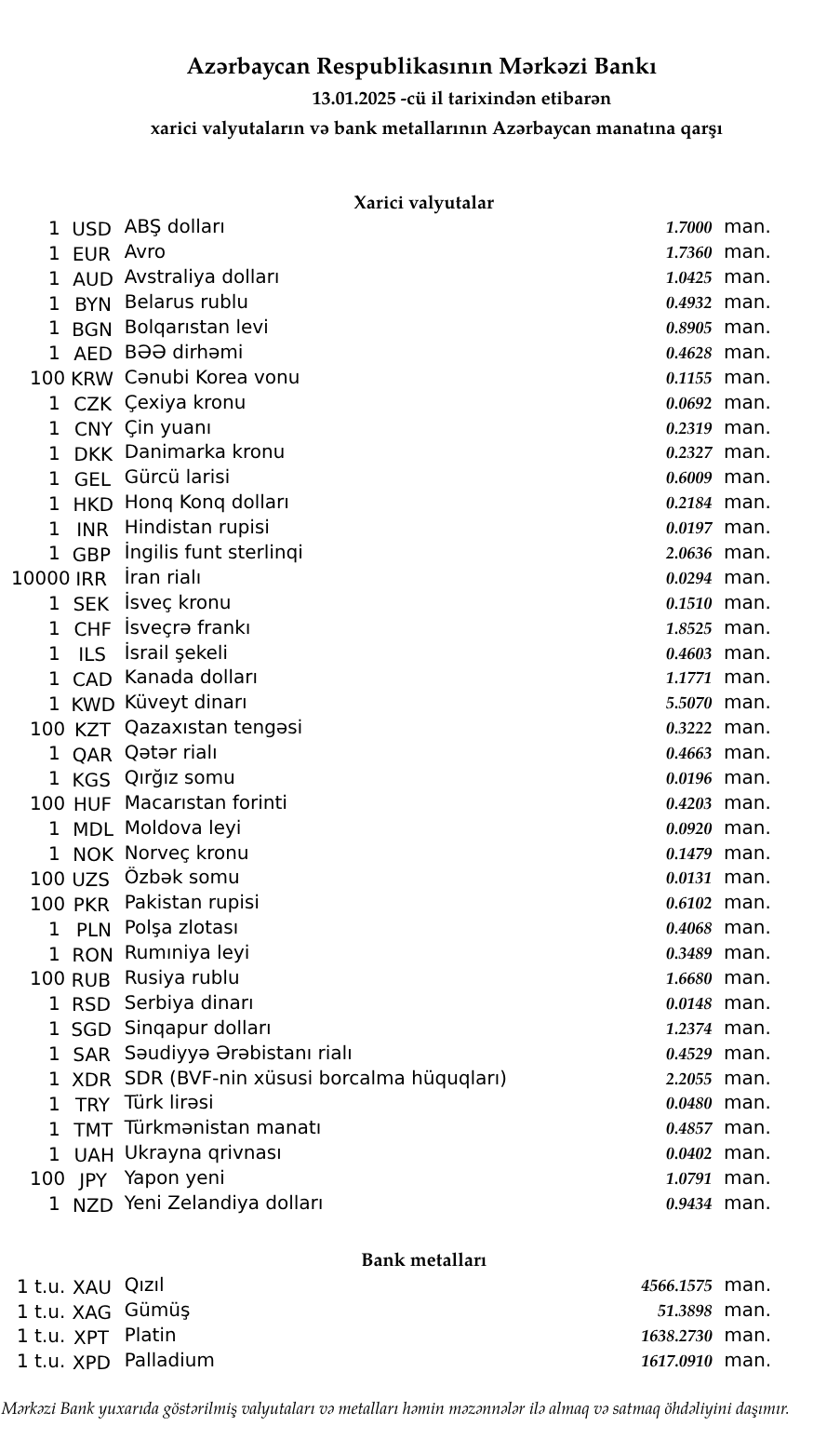 Dolların bazar ertəsi üçün rəsmi məzənnəsi müəyyən olunub