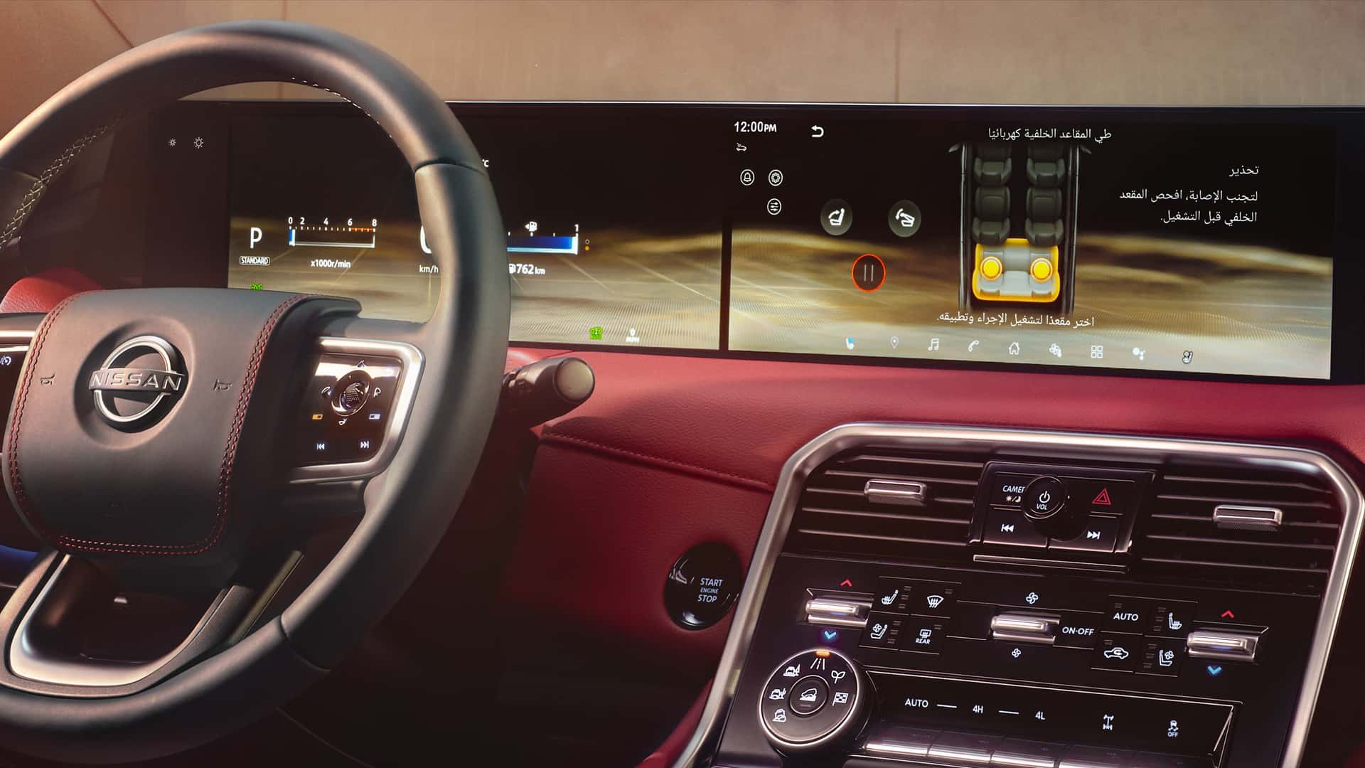 22 düymlük yüngül lehimli disklər Patrolun görünüşündə zəhmi artırır və yolsuzluq qabiliyyəti üçün yüksək klirens təmin edir. Avtomobil iki, 14,3 düymlük ekrana və 28,6 düymlük Monolith üfüqi displeyə malikdir. Arxa oturacaq sərnişinləri Miracast, HDMI və ya USB girişləri olan iki 12,8 düymlük ekrandan istifadə edə bilərlər.