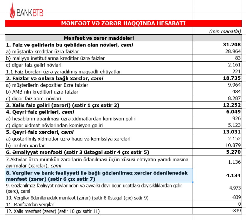 Bank “BTB” 2024-cü ili mənfəətlə başa vurub