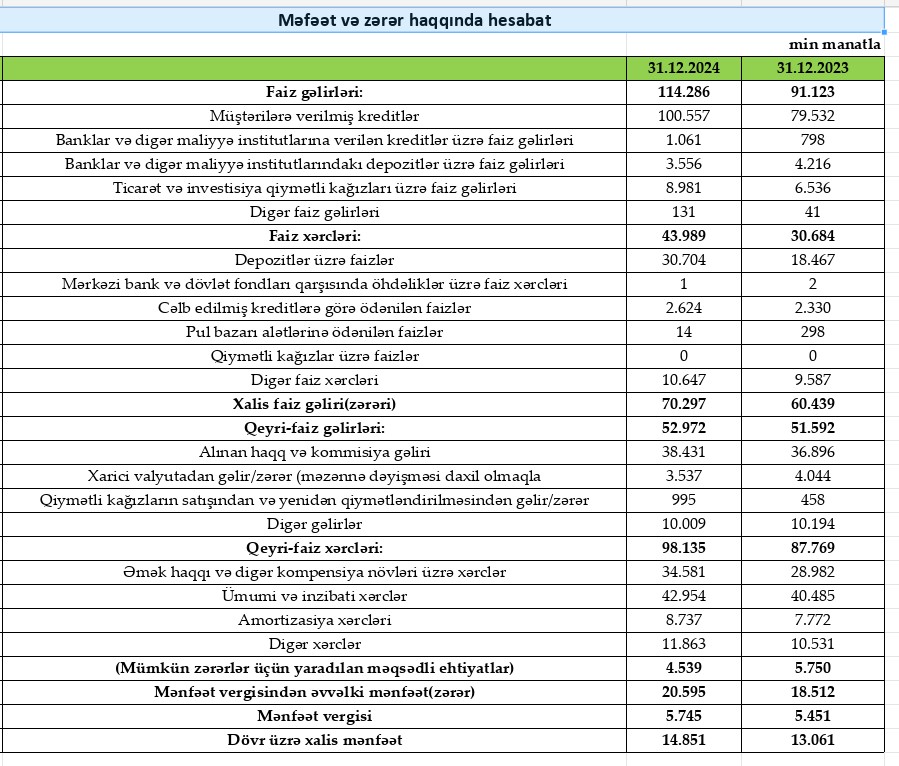 "Rabitəbank" 2024-cü ili mənfəət ilə başa vurub