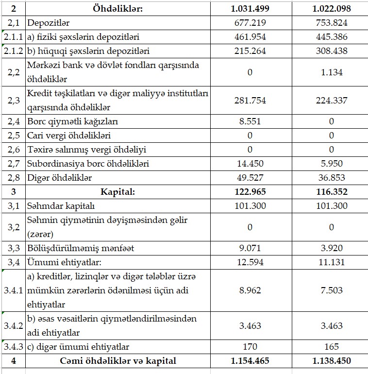 Məcmu kapitalına nəzər saldıqda isə görürük ki, ötən ilin eyni dövrü ilə müqayisədə 17.3% artaraq 132 milyon 859 min manat olub.