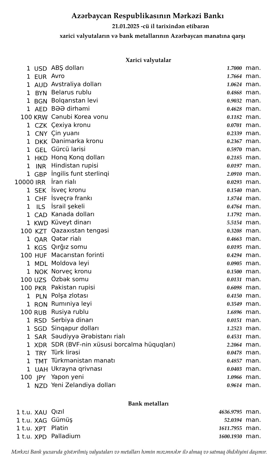 Dolların bazar ertəsi üçün rəsmi məzənnəsi müəyyən olunub
