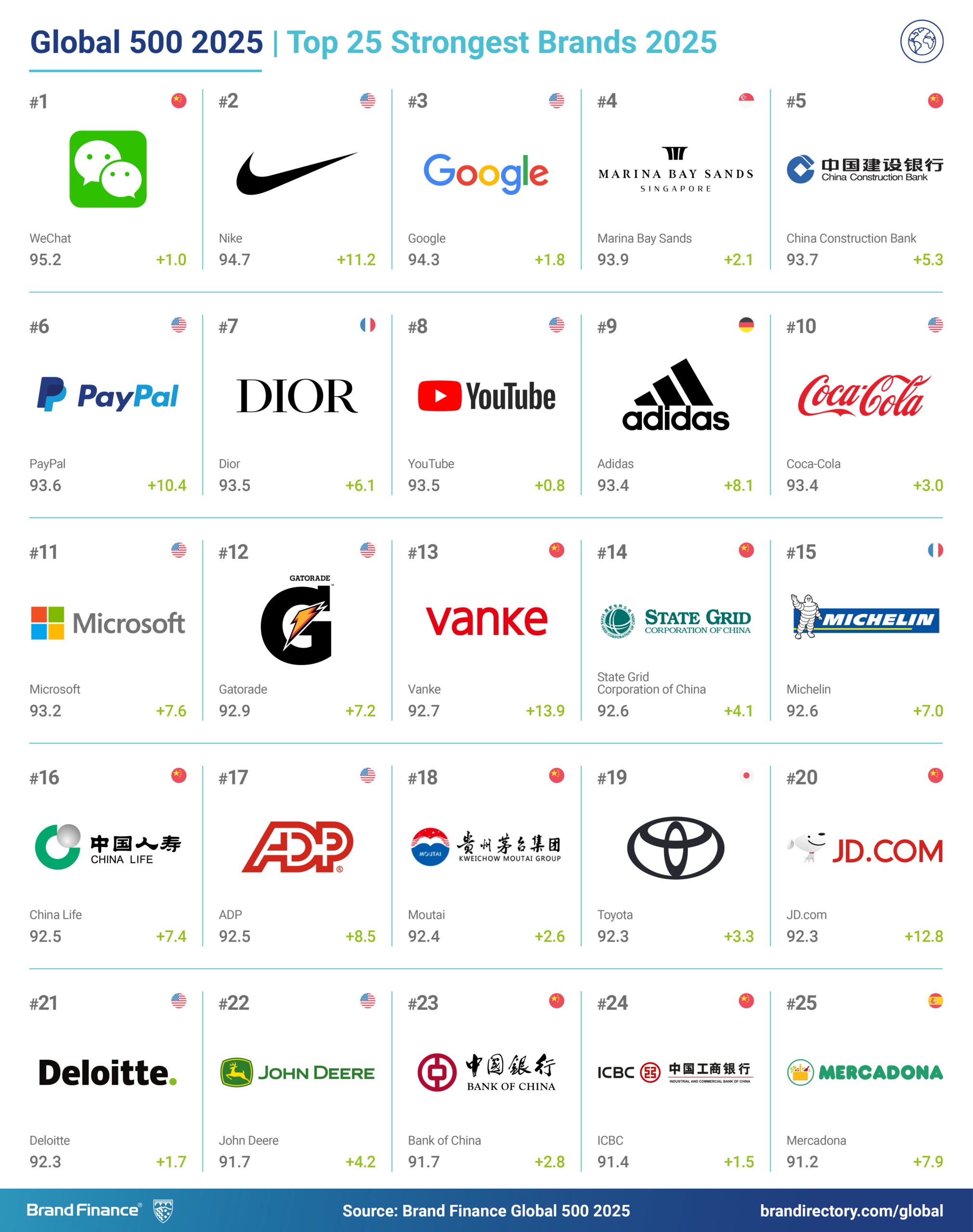 WeChat 100-dən 95,2 bal yığaraq, dünyanın ən güclü brendi adını qoruyub saxlayıb.