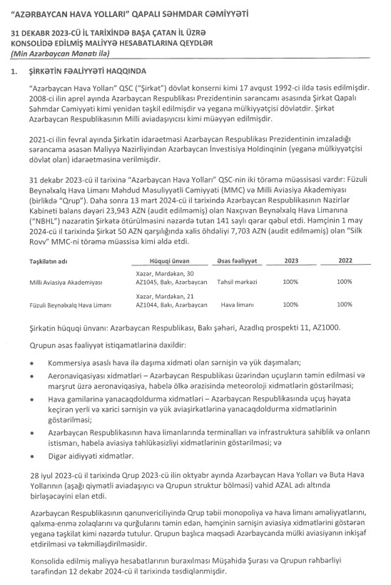 "Marja" xəbər verir ki, bu barədə aviaşirkətin 2023-cü il üzrə maliyyə hesabatında bildirilir.