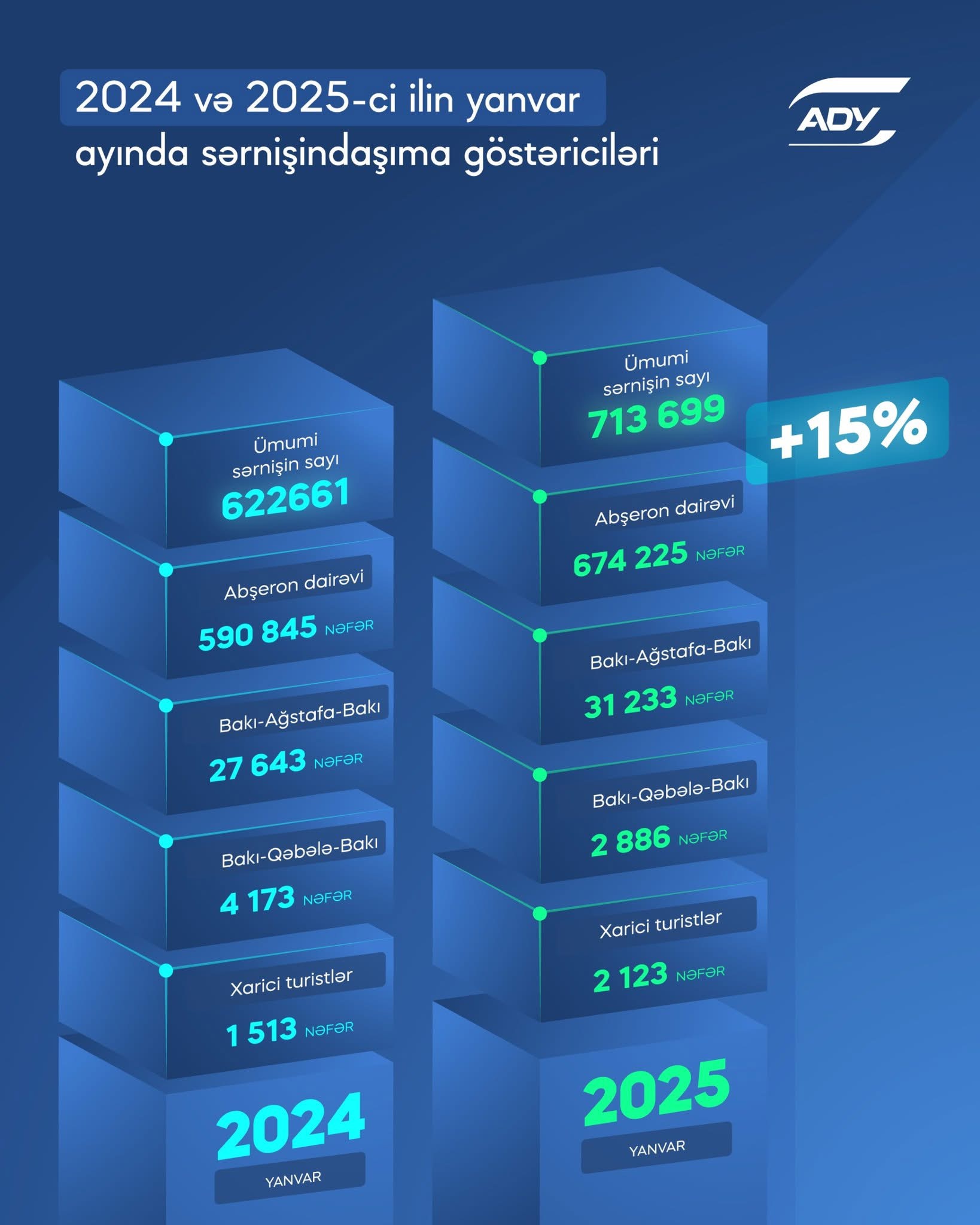 Eyni zamanda, 2025-ci ilin əvvəlindən bərpa edilmiş Bakı-Balakən-Bakı marşrutu ilə 5355 nəfər sərnişin səfər edib.