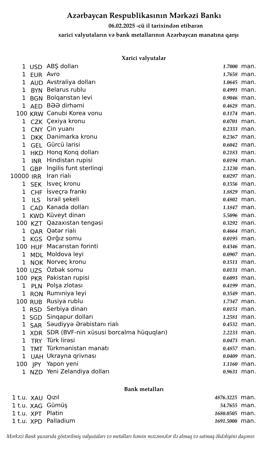 Dolların bazar ertəsi üçün rəsmi məzənnəsi müəyyən olunub