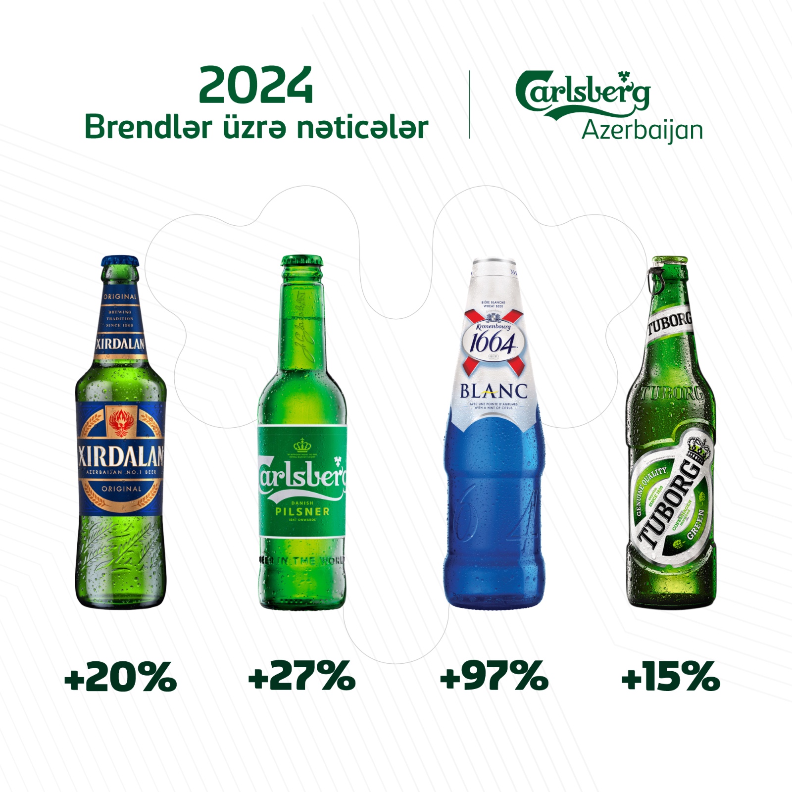 Carlsberg, futbol matçlarının yayımlandığı EGP Arenadakı Football Fan Fest platforması ilə uğurla əməkdaşlıq edərək satış həcminin 26.8% artmasına töhfə verib. Kronenbourg 1664 Blanc, uğurlu marketinq strategiyaları və yüksək mövsümdəki tərəfdaşlıqlar sayəsində 2023-cü il ilə müqayisədə satış həcmini təxminən ikiqat artıraraq 96.6% rekord nəticələr əldə edib. Brend, həmçinin Qəbələdəki Essenso Lavanda Festivalını və ilin ən önəmli tədbirlərindən biri olan Bakı Moda Həftəsini də dəstəkləyib. Tuborg, DreamFest 2024 beynəlxalq musiqi festivalının rəsmi tərəfdaşı oldu və satış həcmini 15.2% artırıb.
