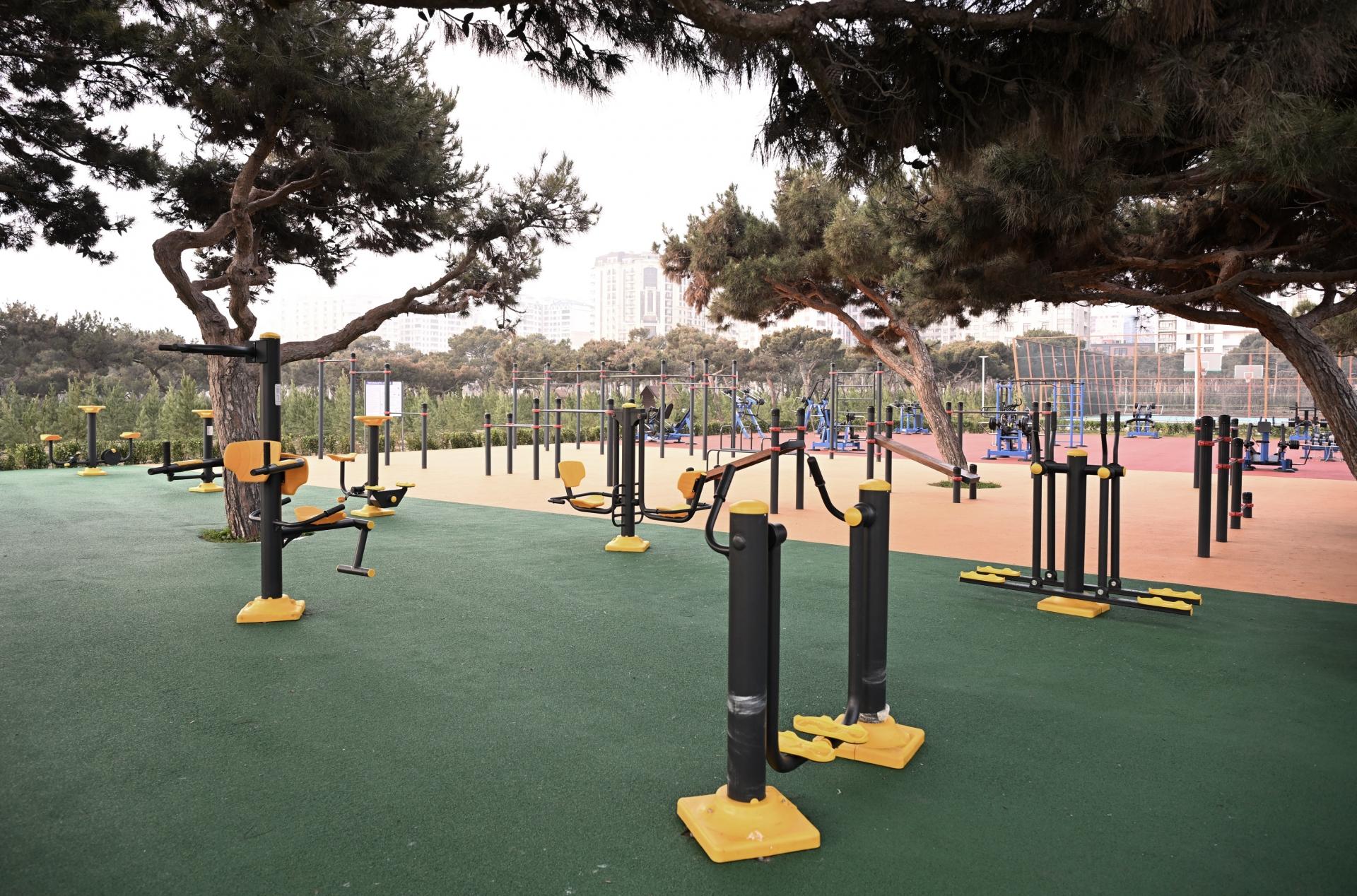Müasir istirahət kompleksinin ərazisinin 14 hektarında yaşıllıq sahələri salınıb, 20 mindən çox ağac və kol əkilib. Parkda avtomat suvarma sistemi, su və yanğın çənləri, nasosxana, təhlükəsizlik müşahidə kameraları quraşdırılıb. Həmçinin işıqlandırma sistemi yeni layihə əsasında ən müasir standartlara uyğun şəkildə qurulub. Parkda piyada və velosiped yolları çəkilib, uşaq-əyləncə və açıq hava şəraitində müasir məşq qurğuları ilə təchiz edilmiş idman meydançaları yaradılıb.