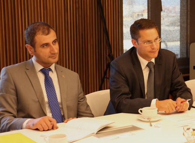 Daha sonra Reto Weyermenin “Hüquqi məsələlər” üzrə Ekspert Qrupunun sədri Qorxmaz Ağayevlə və “ÇYP və Komplayns” üzrə Ekspert Qrupunun sədri Anar Kərimovla görüşü baş tutub. Hər iki ekspert qrupunun fəaliyyəti barədə fikirlər dinlənilib. Görüş zamanı Maliyyə Monitorinqi Xidməti ilə əməkdaşlıq, bank sektorunun qanunvericiliyi ilə bağlı cari vəziyyət, icra prosesinin sadələşdirilməsi, o cümlədən “Daşınar əmlakın yüklülüyü haqqında” qanunun təkmilləşdirilməsi ilə bağlı məsələlər müzakirə olunub.