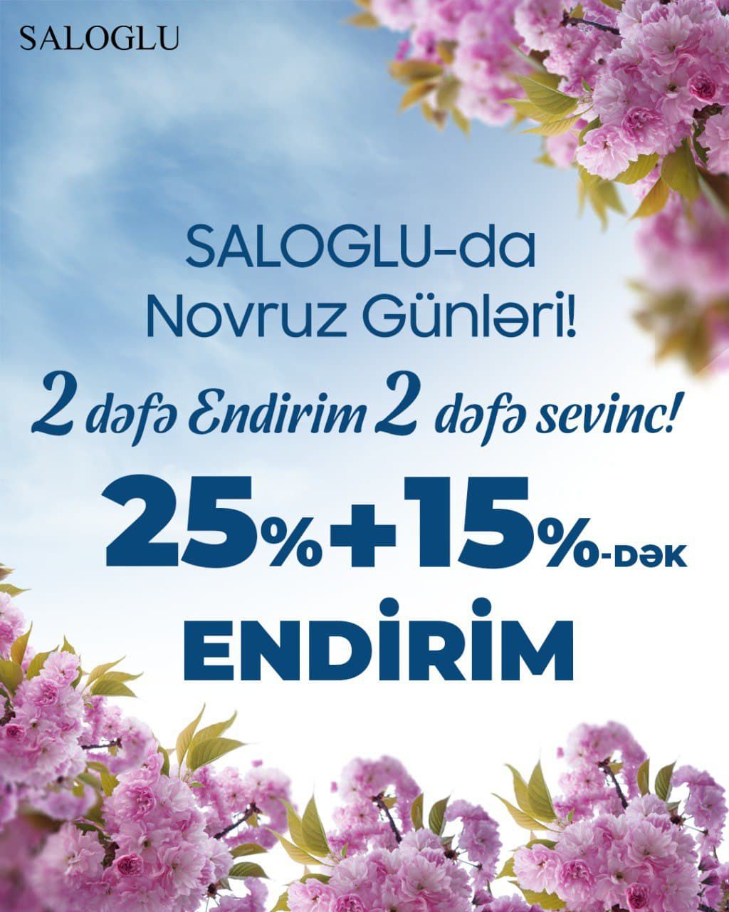 Novruz bayramına özəl iki səfə endirim!(®) "Saloğlu Mebel" Novruz Bayramına özəl "İki dəfə sevinc kampaniyası!" elan edib.