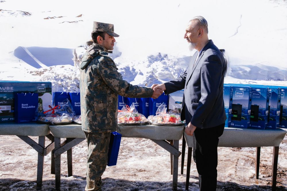 “Bank Respublika”nın əməkdaşları Novruz bayramı ərəfəsində əsgərləri ziyarət etdi(®) Xalqımızın milli bayramı olan Novruz bayramı ərəfəsində “Bank Respublika”nın əməkdaşları işğaldan azad olunmuş torpaqlarımızda, dağlıq ərazidə yerləşən hərbi hissələrə səfər edərək Rəşadətli Ordumuzun əsgərlərini ziyarət ediblər.