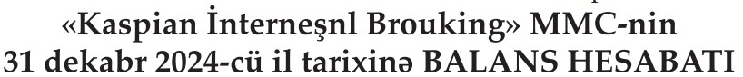 Sığorta və təkrarsığorta brokeri "Kaspian İnterneşnl Brouking" MMC (Caspian International Broking - CİB) 2024-cü ili 1 milyon 820 min manat xalis mənfəət ilə başa vurub. Şirkət 2023-cü ili 1 milyon 776 min manat xalis mənfəət ilə bağlamışdı.