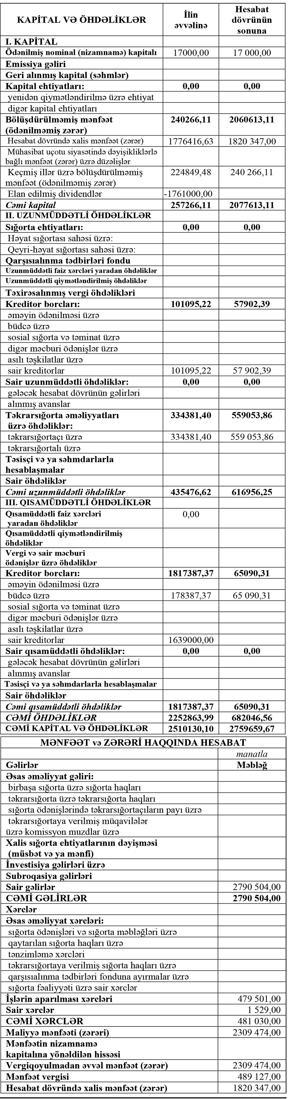 Marja xəbər verir ki, ötən il Şirkətin cəmi gəlirləri 2 milyon 791 min manat, cəmi xərcləri 481 min manat təşkil edib.