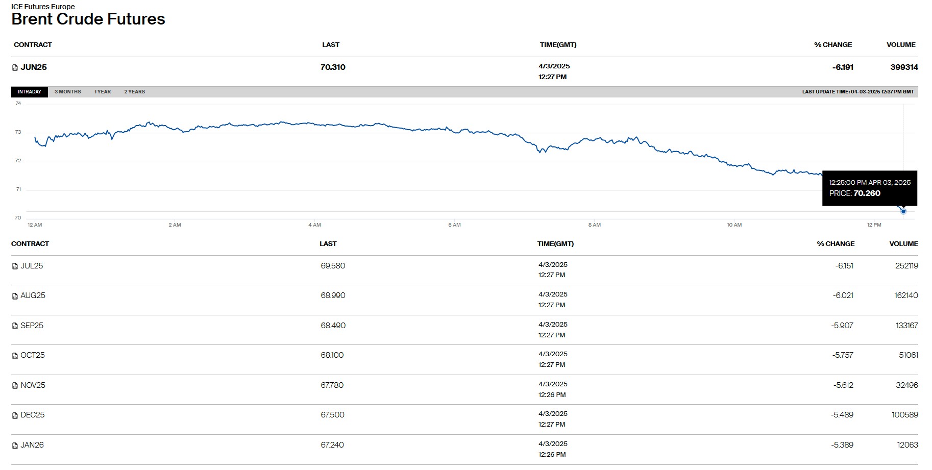 OPEC+ may ayında neft hasilatını artırmaq planına sadiq qaldığı üçün, neft qiymətləri kəskin düüşb. Brent markalı neftin qiyməti 6% azalaraq 70 dollar/barel səviyyələrinə geriləyib. Trampın tariflərinə əlavə olaraq, OPEC+-ın may ayında hasilatı gündəlik 411 min barel artıracağı barədə açıqlama kotirovkalara təzyiq göstərir.Neft İxrac Edən Ölkələr Təşkilatı (OPEC) və Rusiyanın başçılıq etdiyi səkkiz "OPEC+" üzv ölkəsi may ayında neft hasilatını gündəlik 411 min barel artırmaq planlarını davam etdirmək barədə razılığa gəliblər.