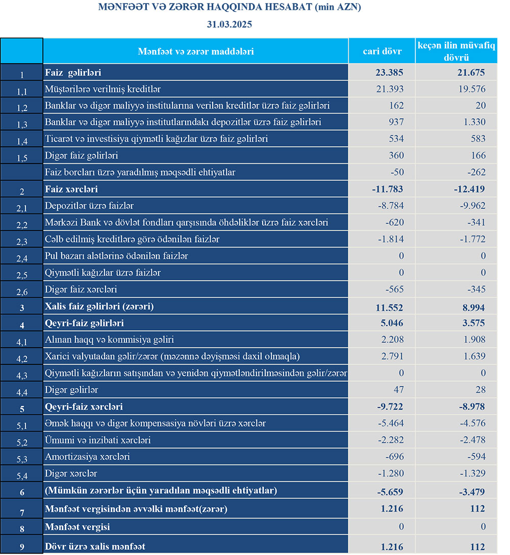 İlk rübdə "Turanbank"ın həm faiz, həm də qeyri-faiz gəlirləri artıb, faiz xərcləri isə azalıb.