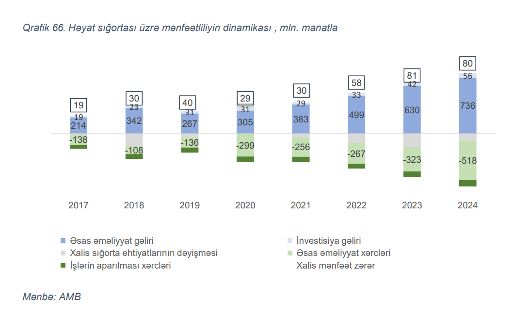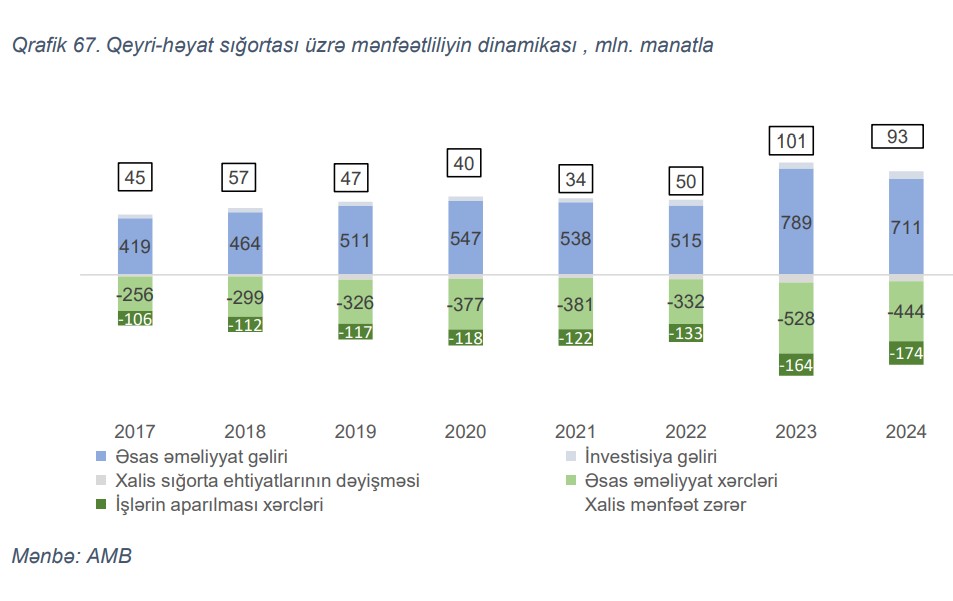 Sığorta sektoru mənfəətlə fəaliyyət göstərsə də, sektorun mənfəətliliyi ötən illə müqayisədə azalmışdır. 2023-ci ilin sonu ilə müqayisədə 2024-cü ilin sonuna sığorta sektorunun xalis mənfəəti 5% (9 mln.manat) azalaraq 173 mln. manat olmuşdur. Qaytarılan sığorta haqlarının və işlərin aparılması xərcləri fonunda həyat sığorta şirkətləri üzrə mənfəətlilik 1 mln. manat azalaraq 80 mln.manat, qeyri-həyat sığorta şirkətləri üzrə mənfəətlilik 8 mln. manat azalaraq 93 mln.manat olmuşdur.