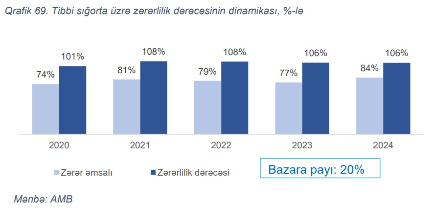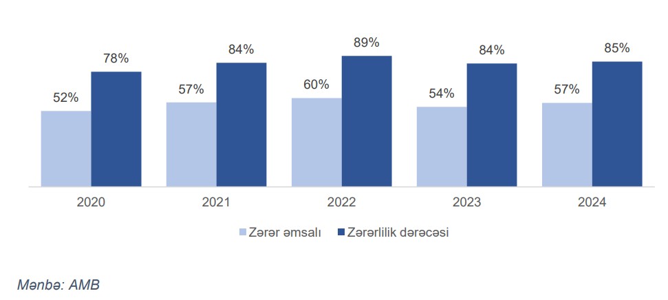 Qeyd edilib ki, sığorta sektorunun zərərlilik dərəcəsi 1 faiz bəndi artmışdır. 2024-cü ildə ötən ilin sonuna nəzərən sığorta sektorunun zərərlilik dərəcəsi 1 faiz bəndi artaraq 85% olmuşdur. Yüksək bazar payına sahib bir neçə sığorta siniflərində zərərlilik dərəcəsinin artması sığorta sektorunun zərərlilik dərəcəsinin artmasına təsir etmişdir.
