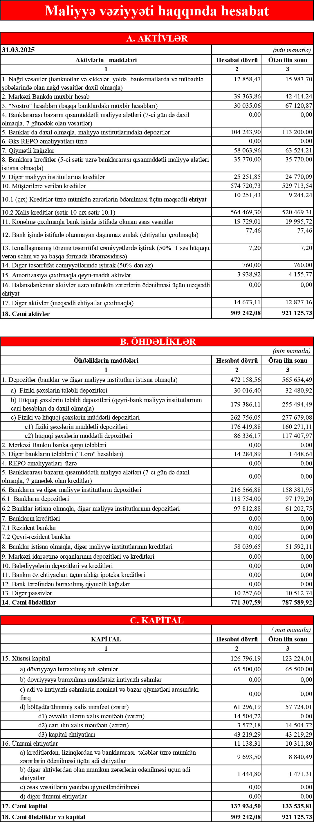 Marja.az xəbər verir ki, "Ziraat Bank Azərbaycan" 31 mart 2025-ci il tarixində 909 milyon 242 min manat cəmi aktivlərə malik olub.