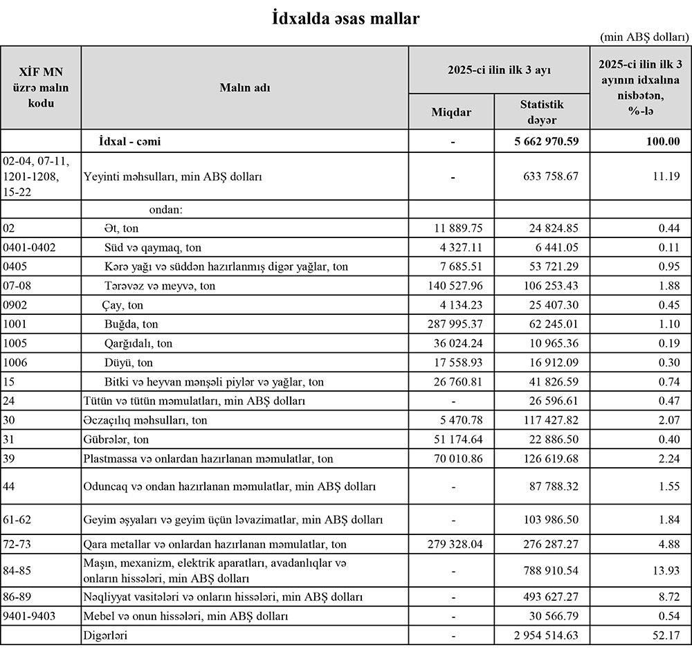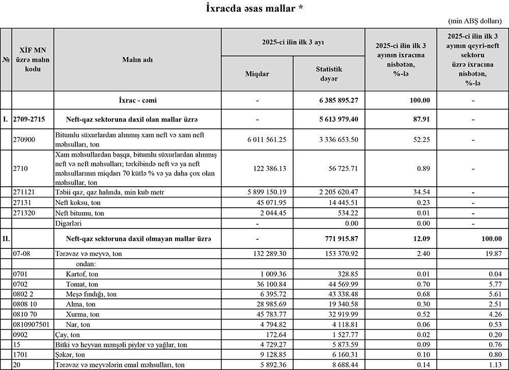 2025-ci ilin yanvar-mart aylarında Azərbaycanın ən çox ixrac və idxal etdiyi mallar.