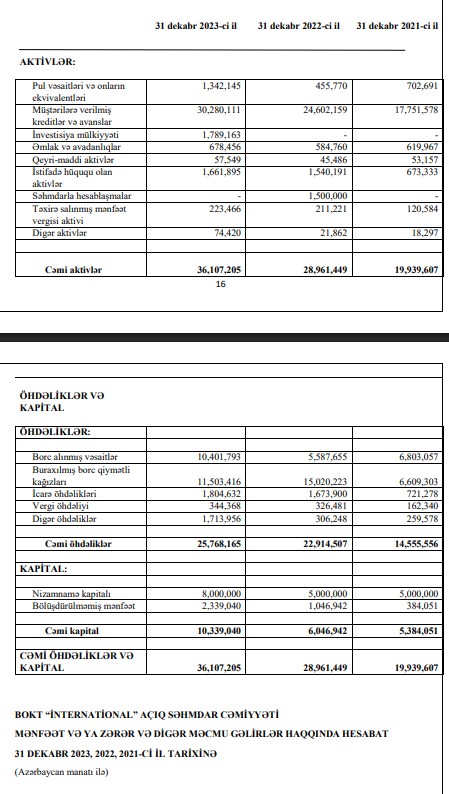 BOKT “İnternational”ın kredit portfeli böyüyüb, xalis mənfəəti kəskin artıb