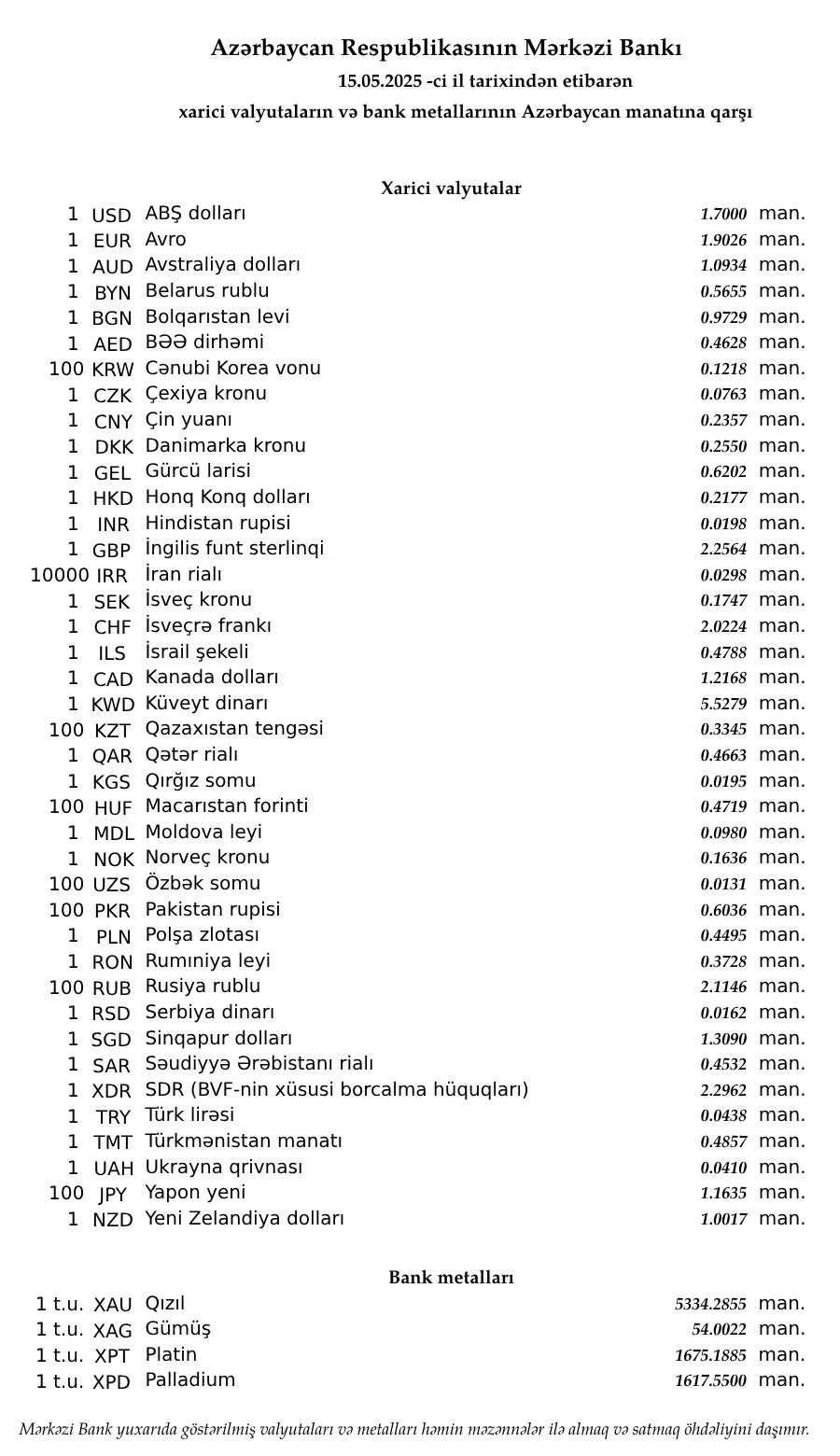 Dolların sabah üçün rəsmi məzənnəsi müəyyən olunub