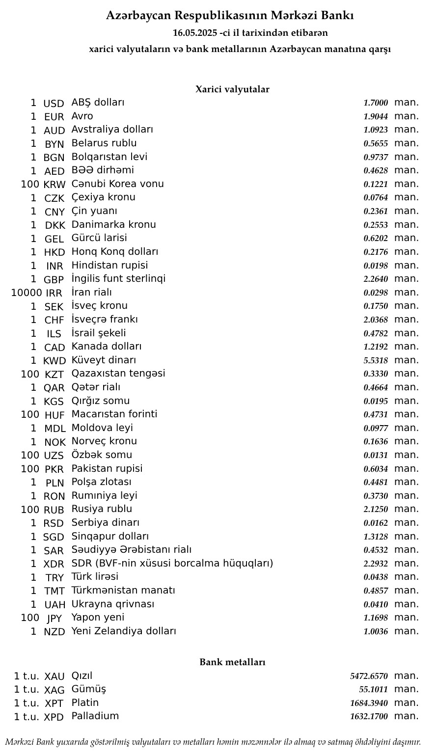 Dolların sabah üçün rəsmi məzənnəsi müəyyən olunub
