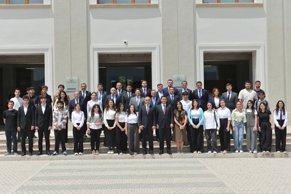 Görüş çərçivəsində DVX rəhbərliyi Qarabağ Universitetində yaradılmış müasir tədris infrastrukturu ilə tanış olub, müəllim və tələbə heyəti ilə görüşüb. Universitetin rektoru Şahin Bayramov qonaqlara tələbələrin qəbulu ilə bağlı statistik göstəricilər barədə ətraflı məlumat verib. Rektor işğaldan azad edilmiş ərazilərdə fəaliyyət göstərməyin qürurundan bəhs edərək vurğulayıb ki, tarixi zəfərin qazanıldığı torpaqlarda dövlətçilik ideyalarına sadiq gənclərin yetişdirilməsi universitetin əsas prioritetlərindəndir. Şahin Bayramov Qarabağ Universitetinin tələbələrinin hələ birinci kursdan etibarən müxtəlif elmi konfranslarda, beynəlxalq layihələrdə uğurla iştirak etdiyini diqqətə çatdırıb. Qeyd edib ki, universitetin rəhbərliyi gənclərin regionun tələbatına uyğun yüksək ixtisaslı kadrlar kimi yetişdirilməsi istiqamətində Dövlət Vergi Xidmətinin timsalında müxtəlif təşkilat və qurumlarla faydalı əməkdaşlıqda maraqlıdır.