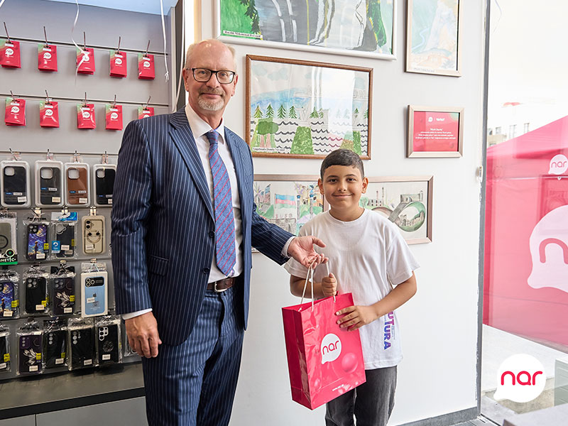Bundan başqa, mağazanın xüsusi guşəsində Füzuli şəhəri, Mirzə Uluqbəy adına 1 saylı məktəbinin istedadlı şagirdlərinin çəkdikləri rəsmlər də nümayiş olunur. Bu rəsmlər “Nar”ın və YARAT Müasir İncəsənət Məkanının sözügedən məktəbdə “Böyük Qayıdış” mövzusunda keçirilən rəsm müsabiqəsinin seçilən əl işləridir.
