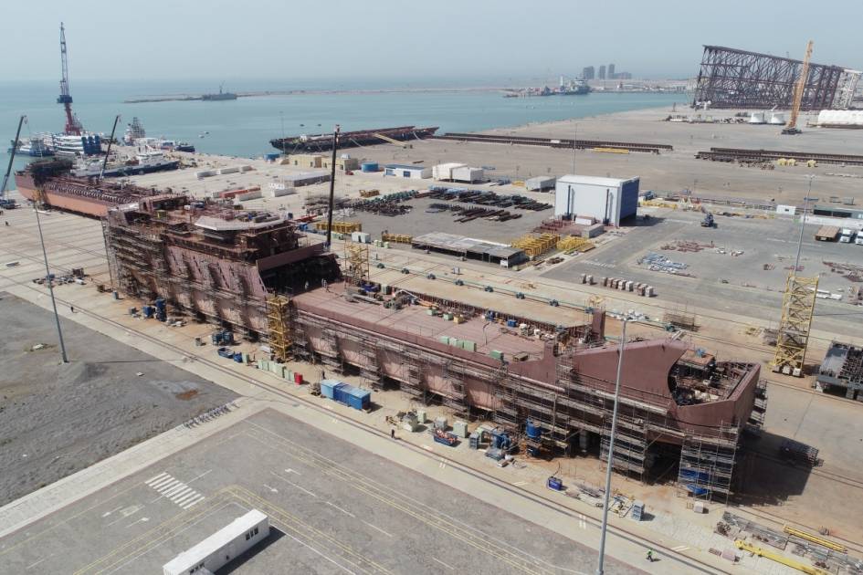 Tikinti prosesi çərçivəsində 33 blok və sub-blok üzrə boyama və birləşdirmə işləri başa çatdırılıb. Daha 12 blok və sub-blok üzrə birləşdirmə işləri hazırda davam edir. Eyni zamanda, əsas gövdə üzrə blokların yığılması prosesi tam şəkildə tamamlanıb.