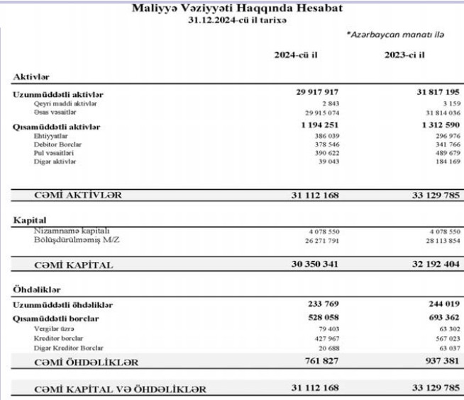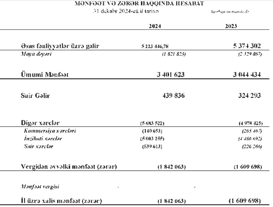 "Azərbaycan Nəşriyyatı" MMC 2024-cü ili 1 milyon 842 min manat xalis zərər ilə başa vurub. Şirkət 2023-cü ili 1 milyon 610 min manat xalis zərər ilə bağlamışdı.