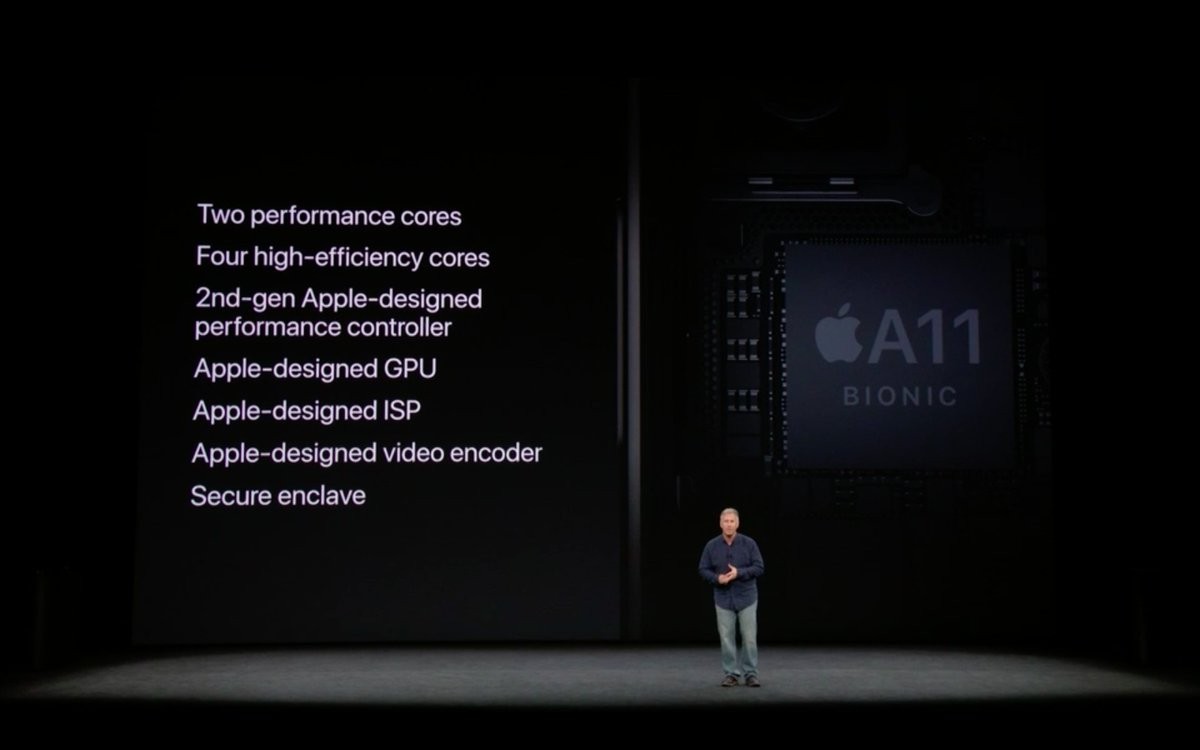 Altı nüvəli prosessorun 2-si yüksək performans, 4-ü güc məhsuldarlığı təmin edir. 10 ilə müqayisədə 70 daha sürətlidir. A11 Bionic adlı çip, dünyanın ən güclü və ağıllı prosessoru kimi təqdim edilib.